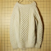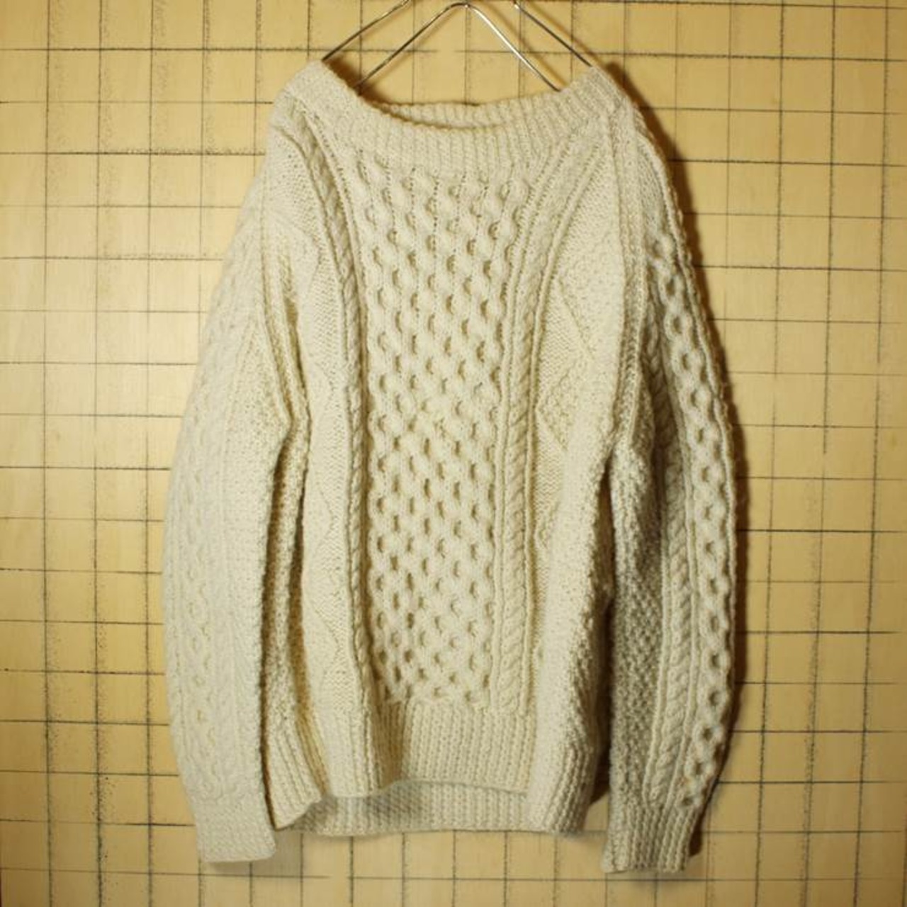 アイルランド製 70s-80s CARRAIS フィッシャーマン アランニット セーター メンズML相当 オフホワイト ヨーロッパ古着
