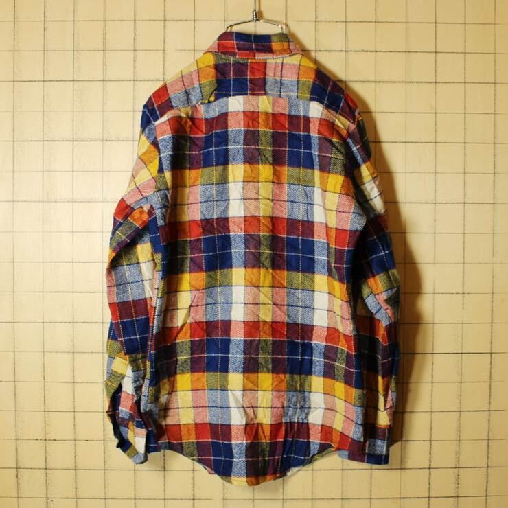 JCPenney 70s アクリル チェック シャツ レディースSM相当 古着 レッド イエロー