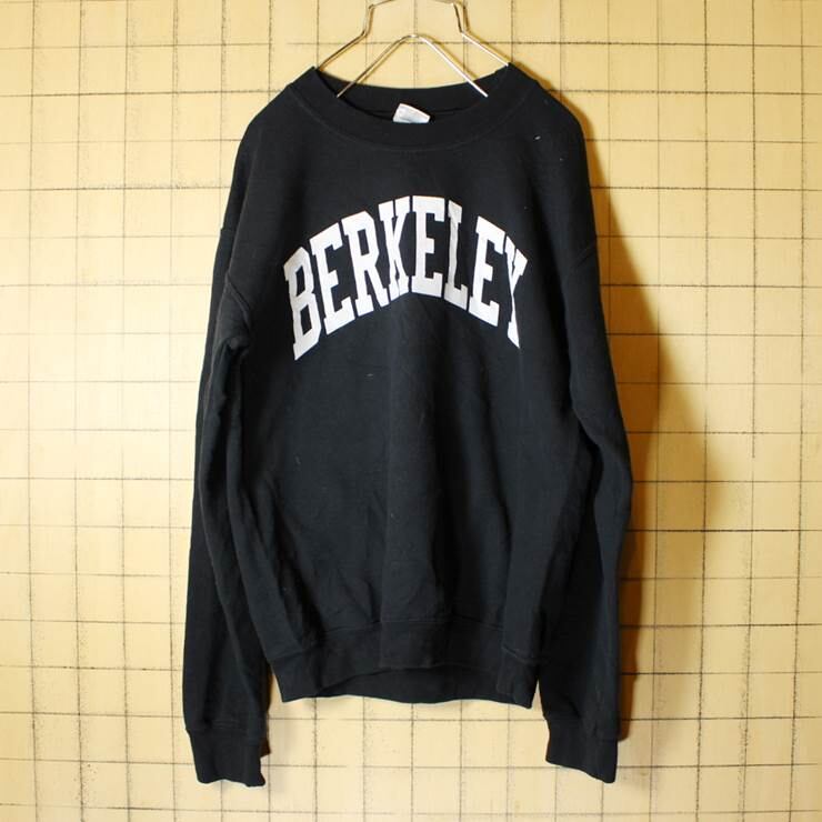 BERKELEY プリント スウェット 古着 ブラック メンズS 黒 カレッジ GILDAN
