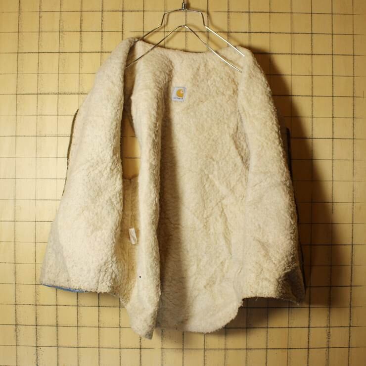 USA製 70s-80s Carhartt カーハート ダックベスト 裏地 ボアライナー メンズL 古着 ライトブラウン ハンティング