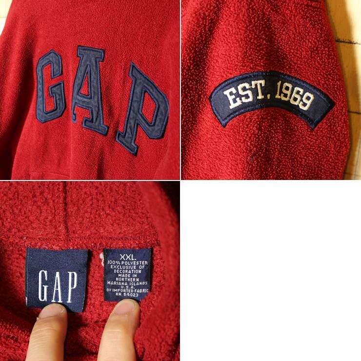 90s OLD GAP ワッペン フリース パーカー レッド フード スウェット メンズXXL 古着です。