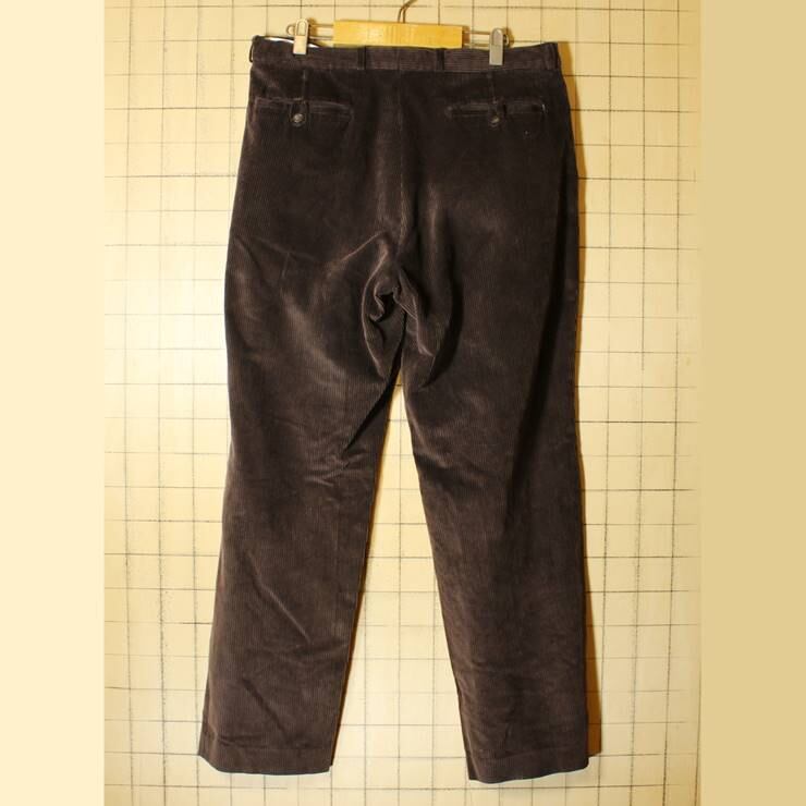 80s 90s EURO ブラウン 太畝 コーデュロイ ワイド パンツ W35相当 茶 ヨーロッパ古着です。