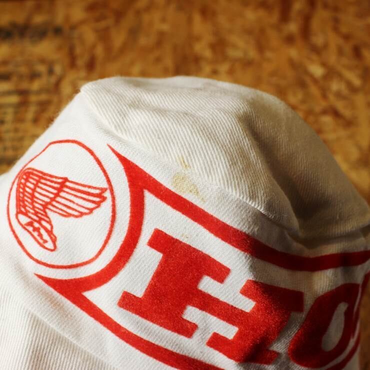 デッドストック HONDA ホンダ ホワイト コットン バケット ハット フロッキープリント 古着 メンズ レディース サファリ 帽子 aw51