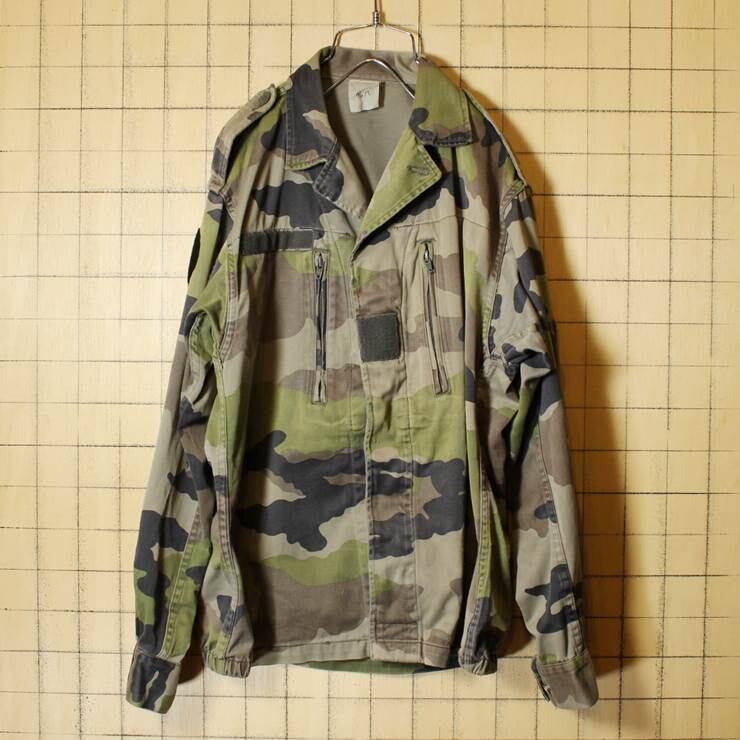 フランス軍 ミリタリー 迷彩 F2 フィールドジャケット カモフラージュ メンズML相当 カーキ グリーン ヨーロッパ古着
