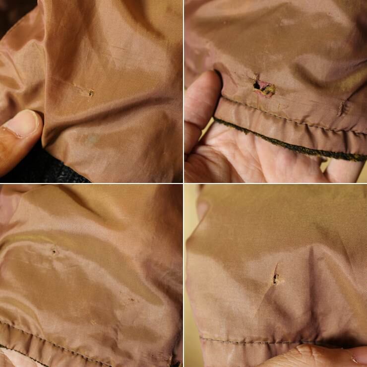 ナイロン側のポケット周りにダメージ、裾などにホールダメージがあります。