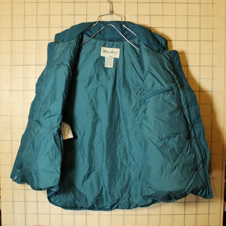 Eddie Bauer エディバウアー ダウンベスト メンズSM相当 レディースL相当 古着 グリーン ジップアップ ワンポイント