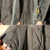 襟、ポケットやヒップ、脇下のステッチ、背面にリペア跡があります。