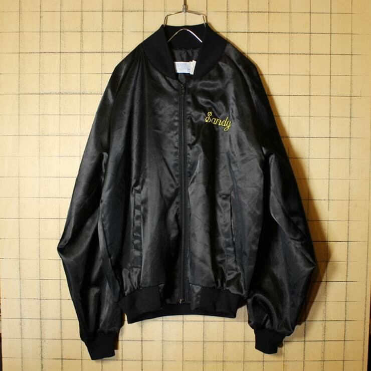 USA製 ブラック ナイロン ジャケット サテン メンズM相当 ジップアップ 古着 UPSTREAM Kang's taekwon・Do スタジャン