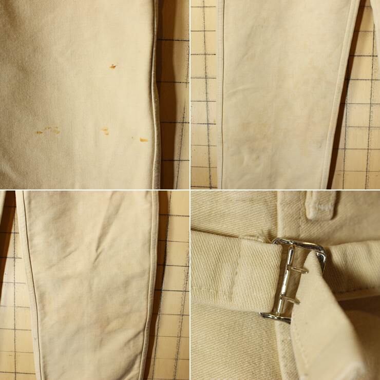 50s-60s ドイツ モールスキン ワークパンツ シンチバック ベージュ オフホワイト メンズ38インチ相当 ビッグサイズです。