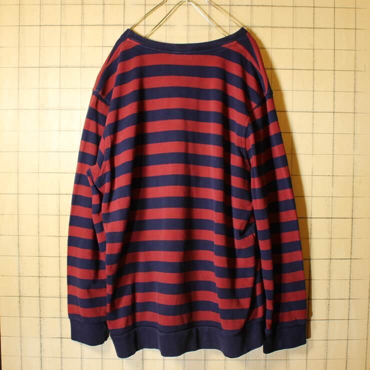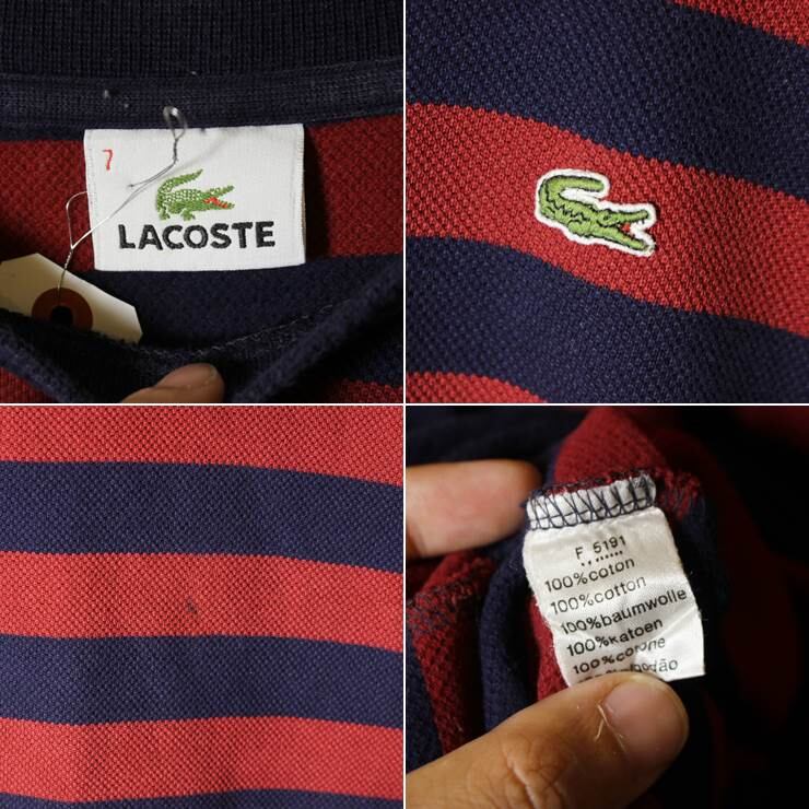 フレンチラコステ Lacoste ワンポイント ボーダー ロンT 長袖 鹿の子 Tシャツ エンジ レッド ネイビー メンズXL相当 フランス企画 古着