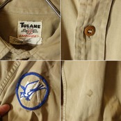 60s TULANE 長袖 ワーク シャツ ベージュ メンズSM相当 古着 ビンテージ ワッペンです。