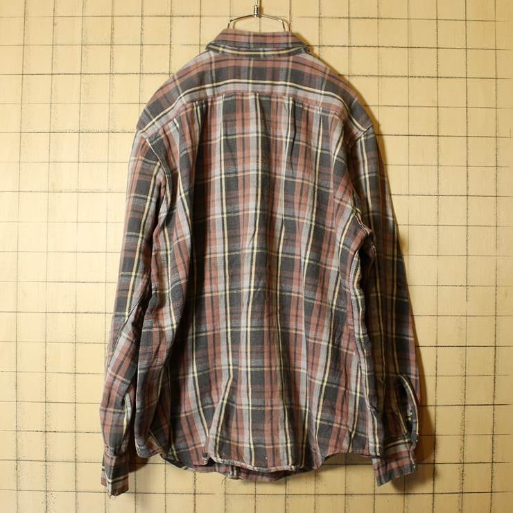 CONE MILLS ヘビー ネルシャツ USA製 70s ビンテージ 古着 ブラウン グレー チェック ワーク メンズL相当 ダメージ