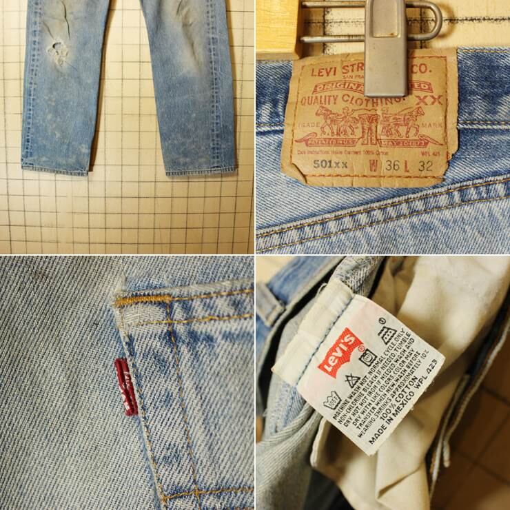 古着 Levis リーバイス 501xx ダメージ ジーンズ デニム パンツ ブルー W36 pan308