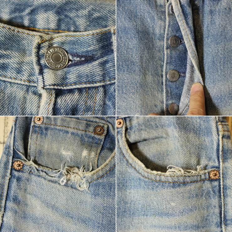 USA製 古着 Levis リーバイス 501xx ダメージ リペア ジーンズ デニム パンツ ブルー W30 pan304