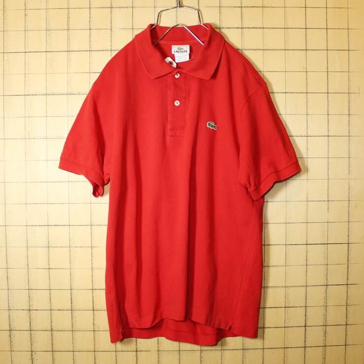フレンチラコステ Lacoste ワンポイント ポロシャツ 半袖 レッド メンズM相当 フランス企画 古着 ss6