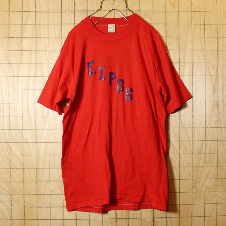古着 70s USA製 EXPOS 両面プリント 半袖 Tシャツ レッド メンズL Sportswear 99です。