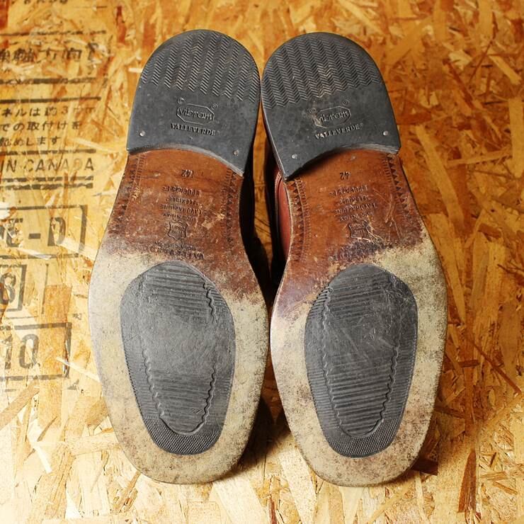 イタリア製 レザー アンクルブーツ ブラウン レースアップ Vibramソール 古着 26cm-26.5cm相当 Valleverdeです。