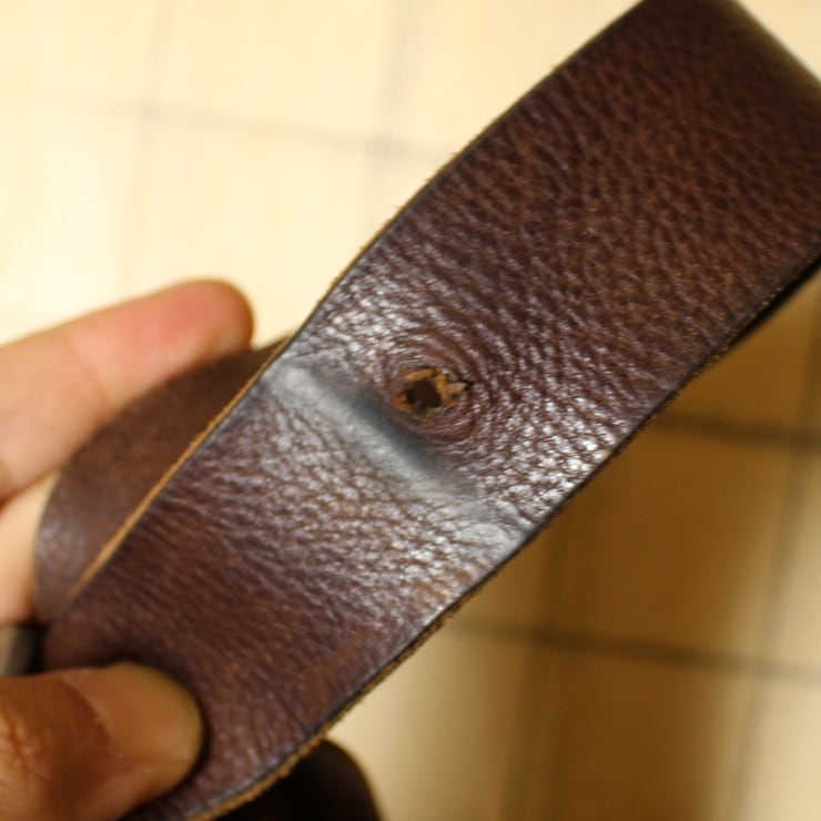 ショルダーはレザーベルトです。以前の持ち主が開けたであろう穴が1か所あります。