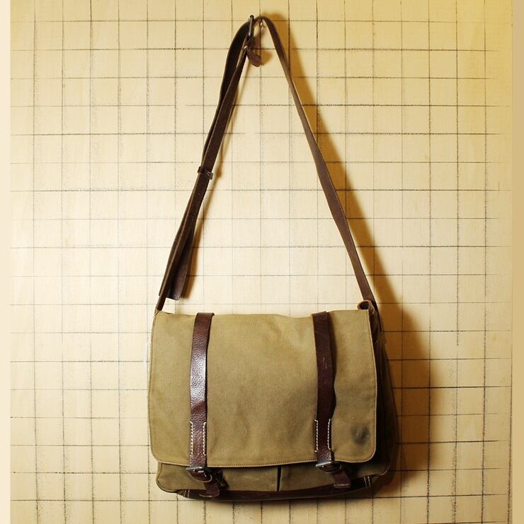 BANANA REPUBLIC バナナリパブリック キャンバス レザー ショルダーバッグ ブラウン 古着