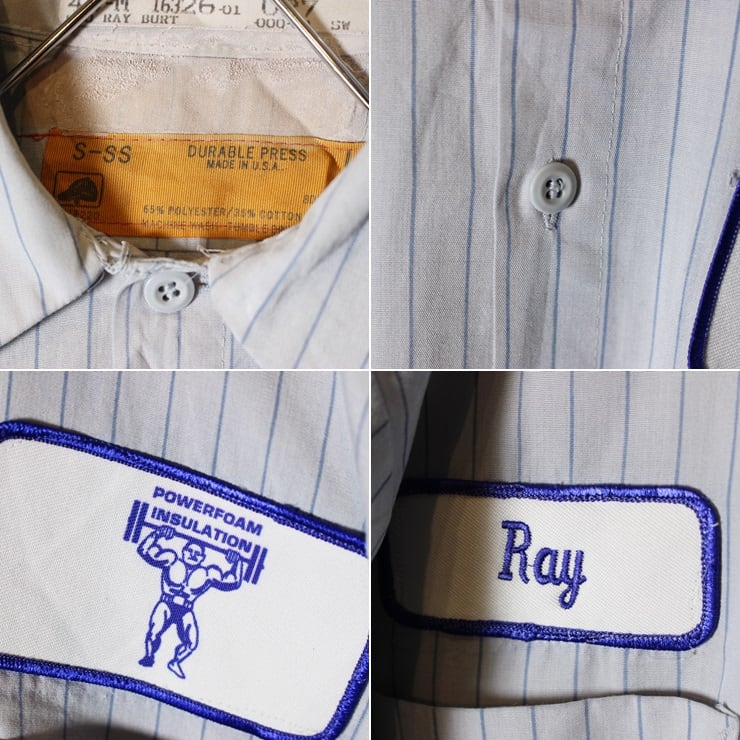 USA製 RED KAP レッドキャップ ストライプ 半袖 ワークシャツ グレー メンズS ワッペン 古着です。