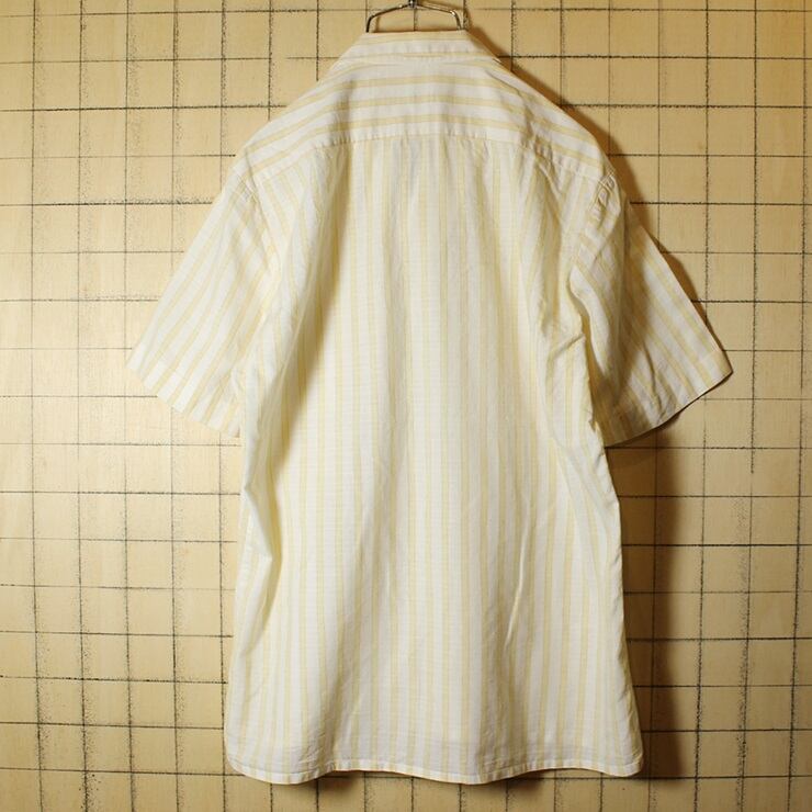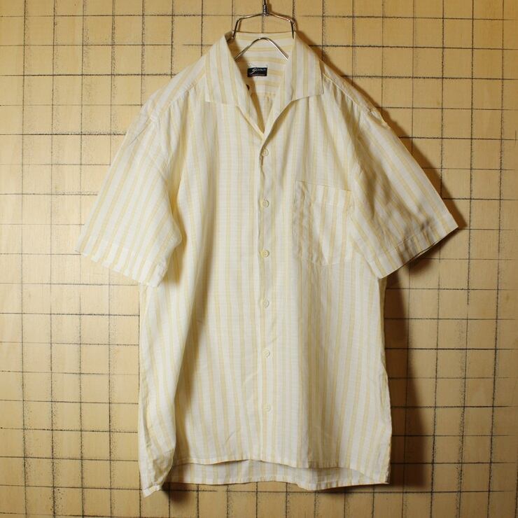 60s Scala ビンテージ オープンカラー ストライプ ボックスシャツ ホワイト イエロー メンズM相当 開襟 半袖 古着