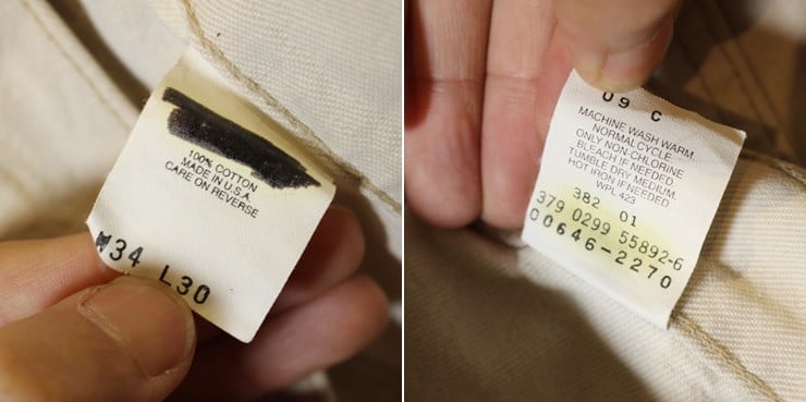タグのリーバイスロゴはマジックで塗りつぶされています。左ヒップポケットにタグが取り外された跡があります。ピスネームは切り取られています。