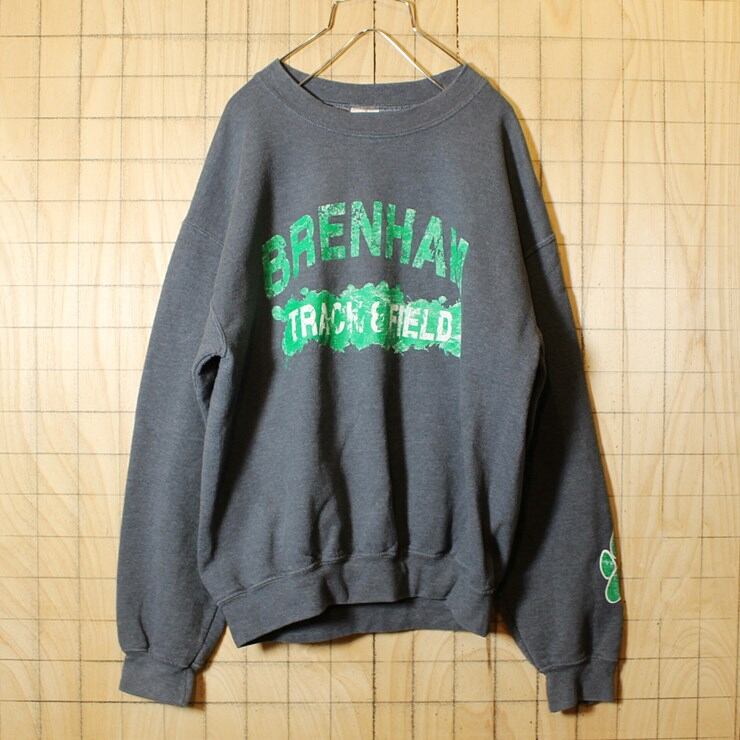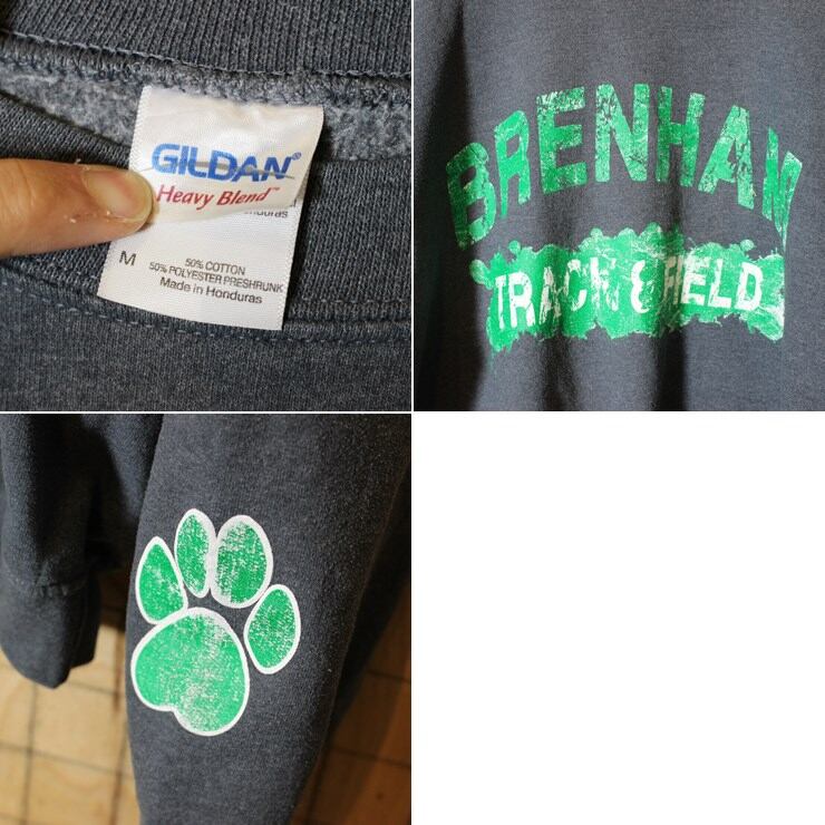 古着 ダークグレー プリント スウェット トレーナー メンズM GILDAN BRENHAM TRACK&FIELD