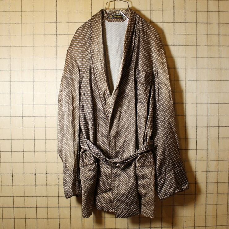 フランス製 古着 ブラウン 総柄 レーヨン パジャマ ガウン メンズL相当 euro ヨーロッパ Harryland