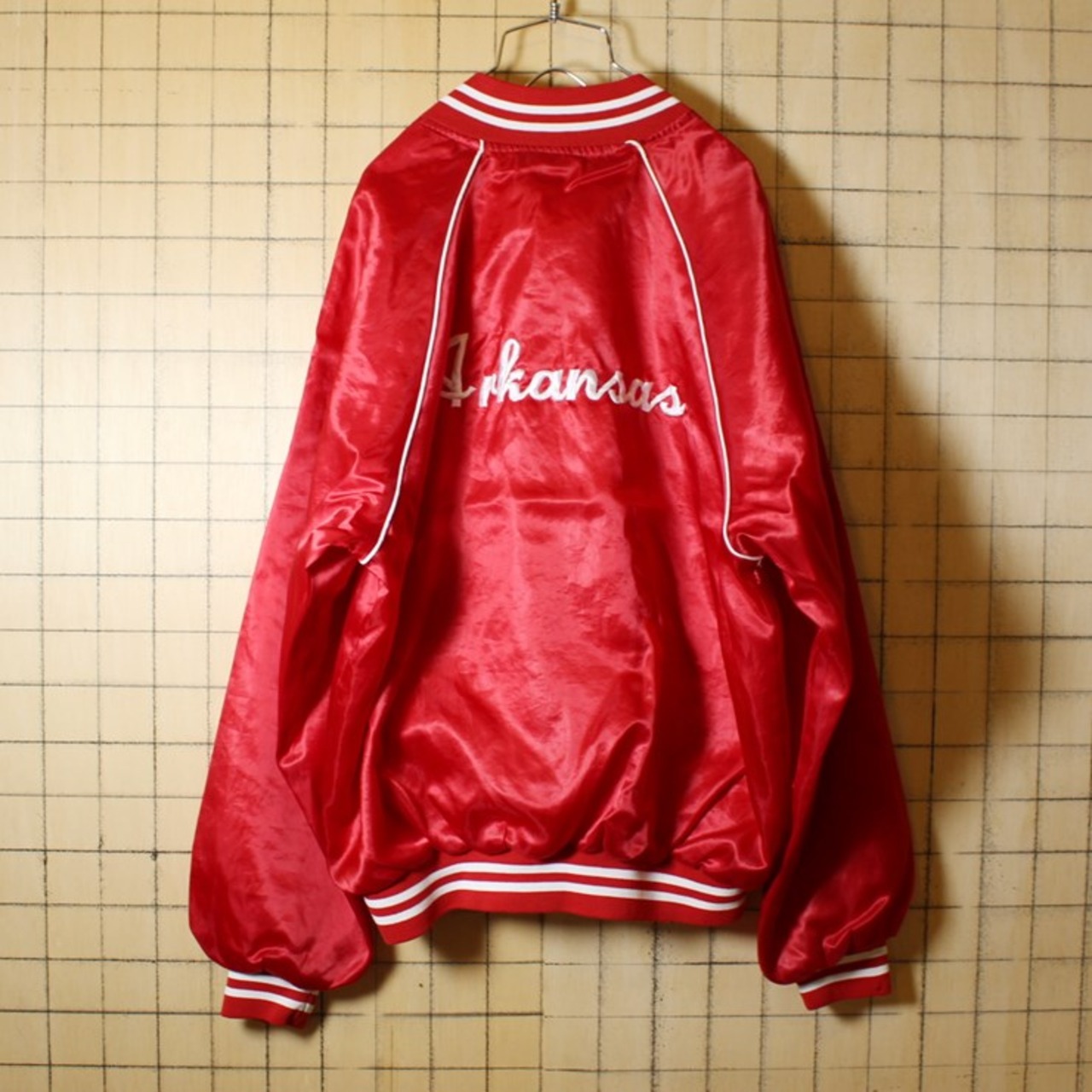 USA製 古着 サテン ナイロン スタジアムジャンパー レッド メンズXL Arkansas 刺繍