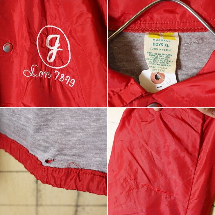 古着特有の使用感は多少ありますが、全体的にコンディションのよいアメリカ製ラッセルナイロンコーチジャケットです。