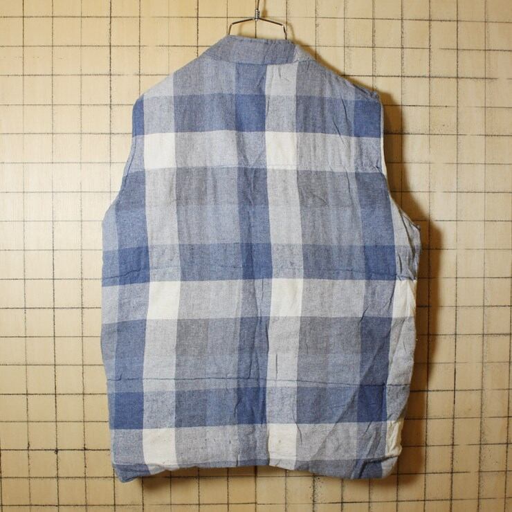 アメリカ古着 中綿 リバーシブル ベスト メンズM ネイビー チェック柄 アウトドア OAKTON