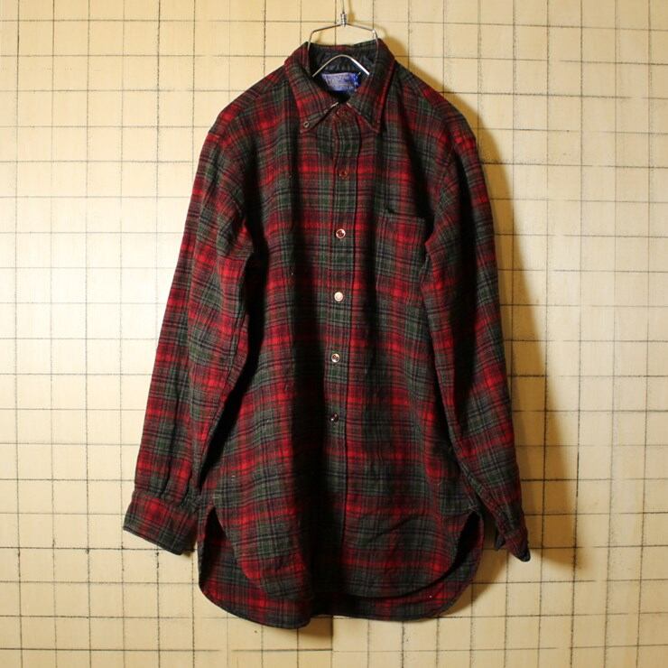 50s-60s USA製 古着 pendleton ペンドルトン レッド 長袖 ウール チェック ボタンダウンシャツ メンズSM相当 エルボーパッチ