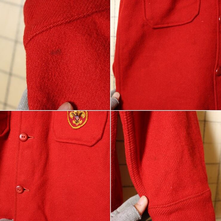 60s USA製 古着 レッド 長袖 ウール ボックスシャツ メンズS相当 BOY SCOUTS OF AMERICA ボーイスカウトです。
