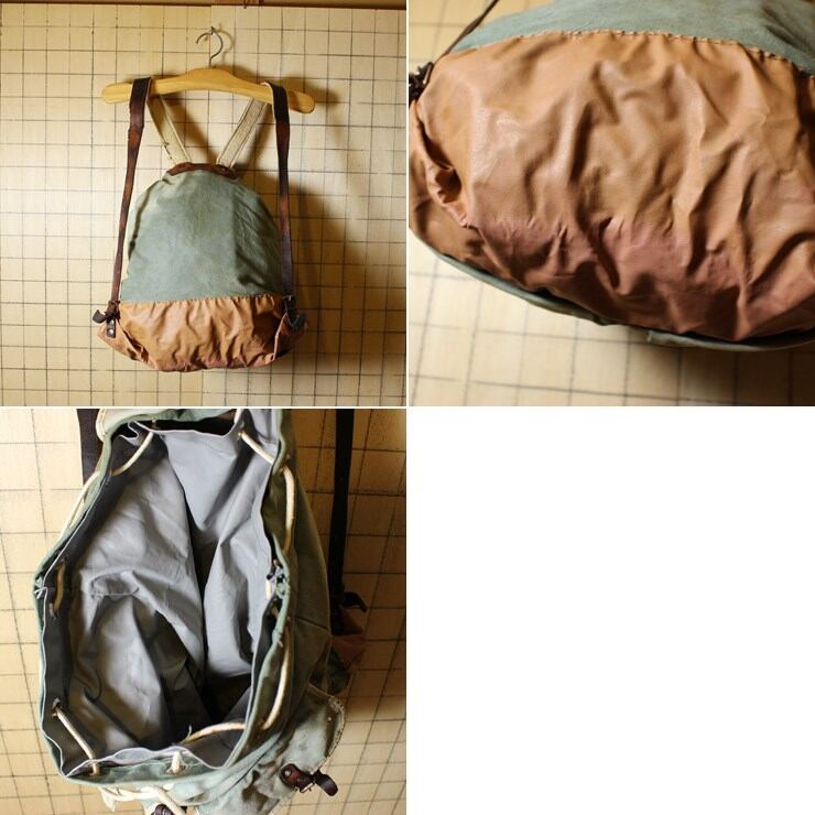 euroミリタリー ヨーロッパ製 グリーン キャンバス レザーベルト リュックサック 083017aw156