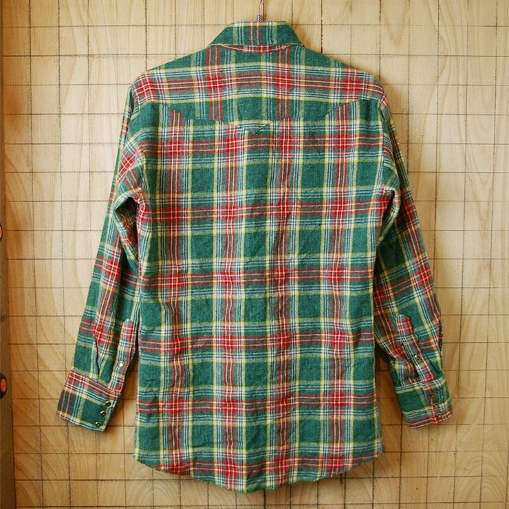 【Wrangler】80'sUSA(アメリカ)製古着グリーン(緑)×レッド(赤)チェックシャツ|sy-l-199