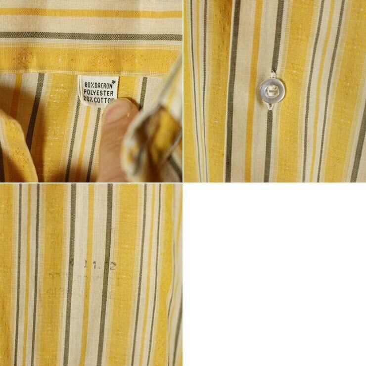USA製 70s ストライプ 長袖 シャツ イエロー メンズL相当 ライトフランネル 古着 010219aw2