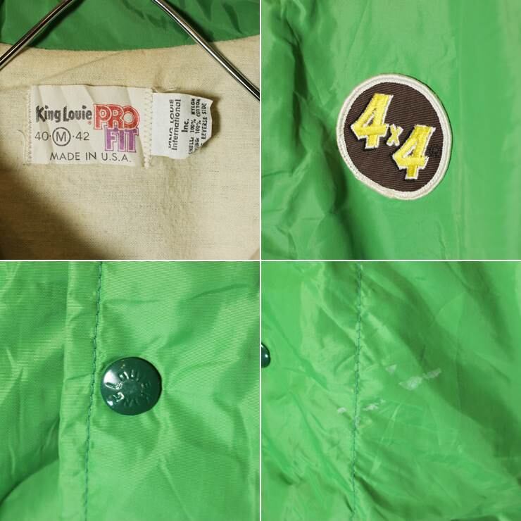 USA製 King Louie 4x4ワッペン ナイロン コーチジャケット グリーン メンズM キングルイ ライナー付 古着です。