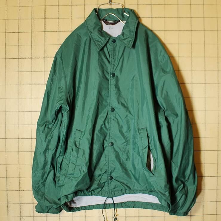 USA製 David Peyser ナイロン コーチジャケット グリーン メンズS バックプリント ライナー付き 古着です。