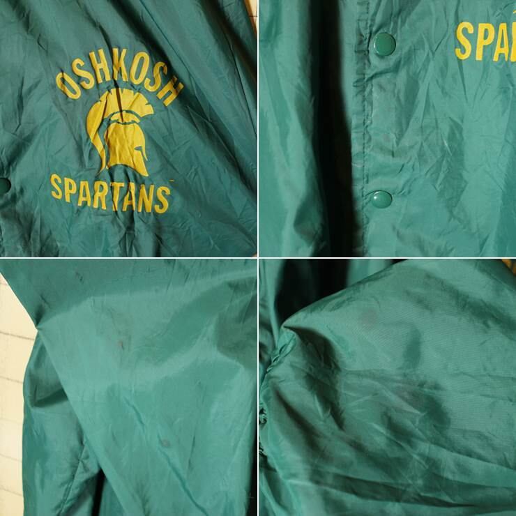 USA製 ナイロン コーチジャケット グリーン メンズXL相当 OSHKOSH SPARTANS プリント 古着です。