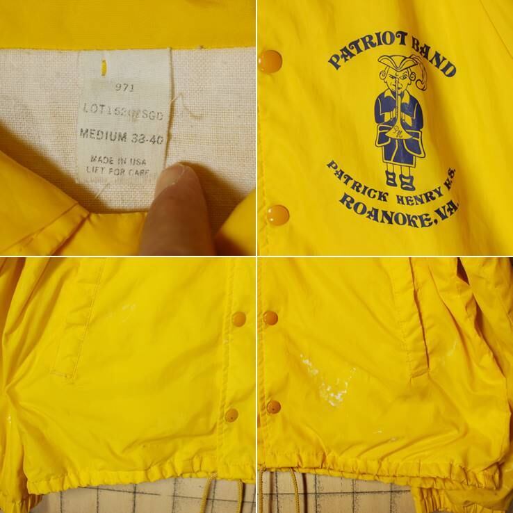 USA製 PATRIOT BAND ナイロン コーチジャケット イエロー メンズM プリント 古着です。