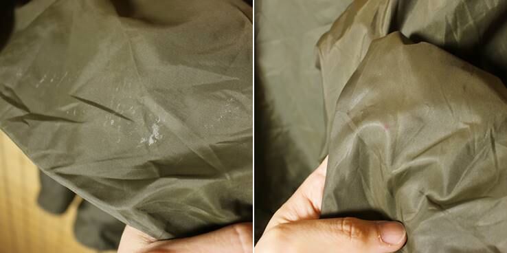 裏地は薄いライナー付きで、裾にほドローコードが付属しています。