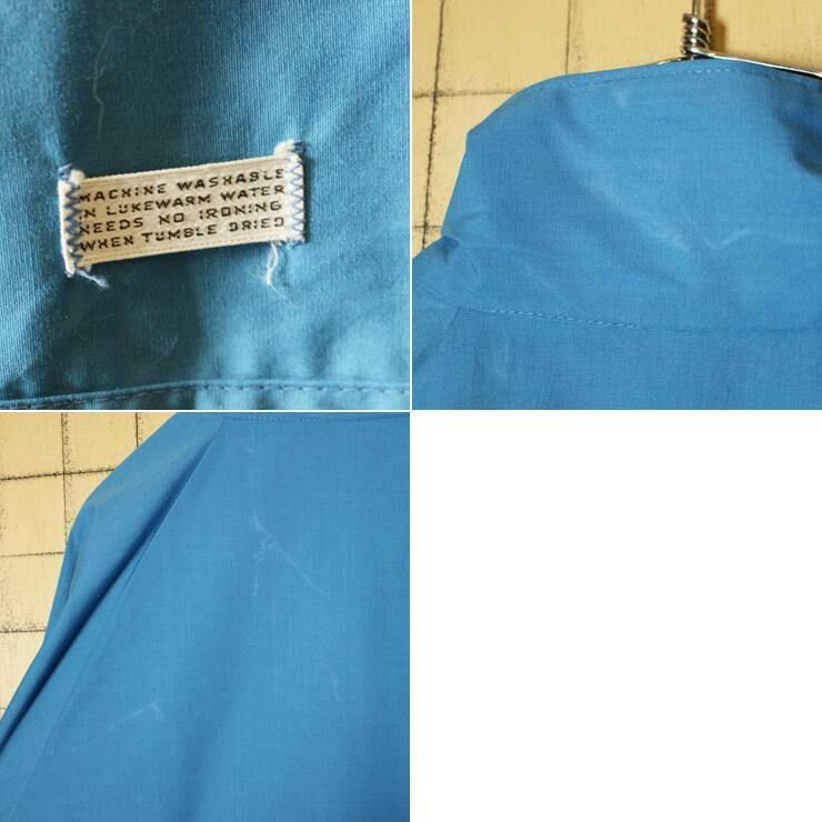 右袖口のボタンが一つ欠損、襟後ろと背面に線状に色あせがあります。