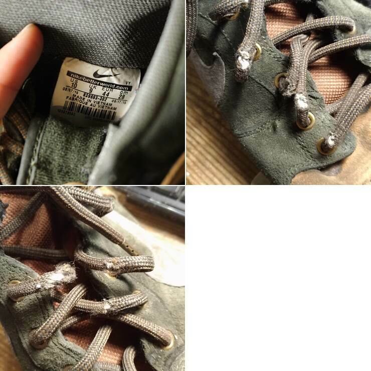 靴紐に擦り切れがあります。その他、使用感は多少ありますがコンディションは良好です。