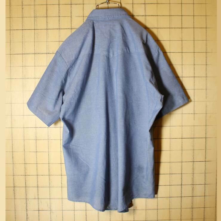 USA製 REDKAP レッドキャップ シャンブレー ワークシャツ 半袖 WISECO ワッペン メンズL ブルー 古着 021319ss85