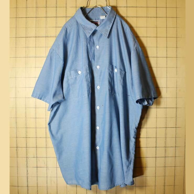 USA製 80s BIGMAC シャンブレー ワークシャツ 半袖 メンズXXL相当 ブルー 古着 無地 ビッグシルエットです。