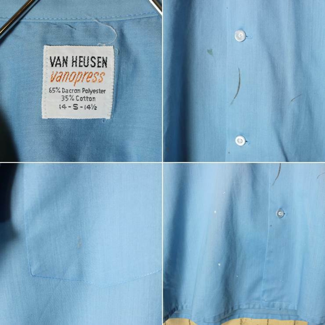 60s VAN HEUSEN 半袖 オープンカラー ボックスシャツ ライトブルー ライトフランネル メンズS ビンテージ 開襟 古着 042419ss119