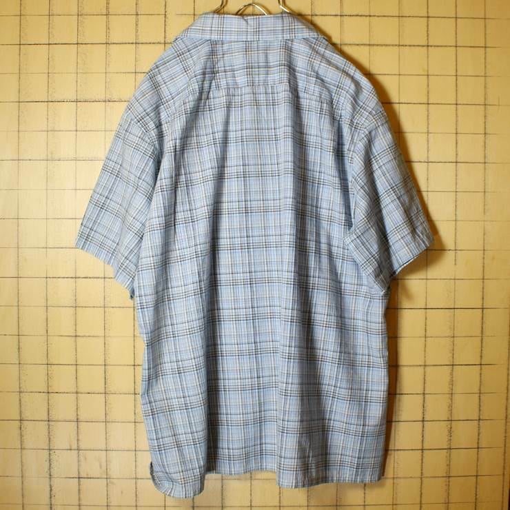 60s Mr.California ビンテージ オープンカラー チェック 半袖 ボックスシャツ ライトブルー メンズXL 開襟 古着 042419ss123