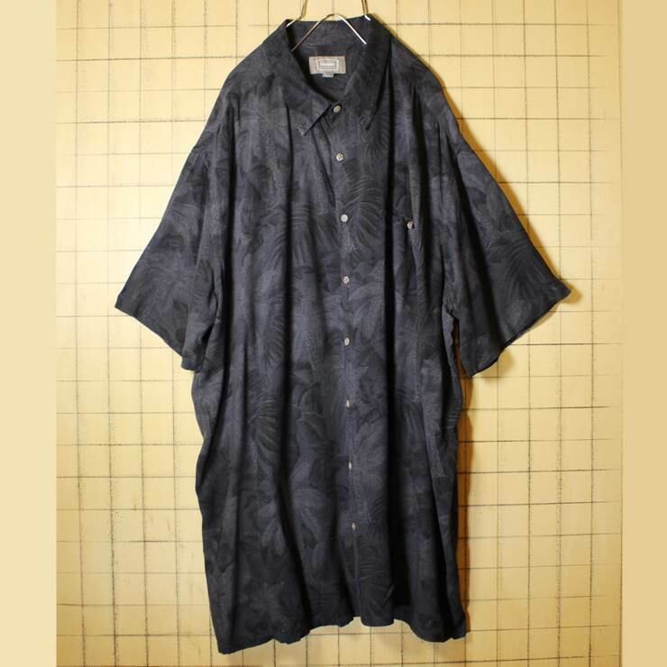 総柄 半袖 レーヨン アロハ シャツ ブラック メンズ3XL 古着 ヤシの木 ビッグシルエット FOUNDRY 042419ss144