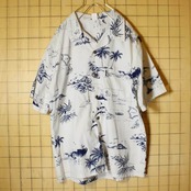 Palmwave 総柄 アロハ ハワイアン コットン ボックス オープンカラーシャツ ホワイト メンズL マップ 半袖 古着 042419ss156