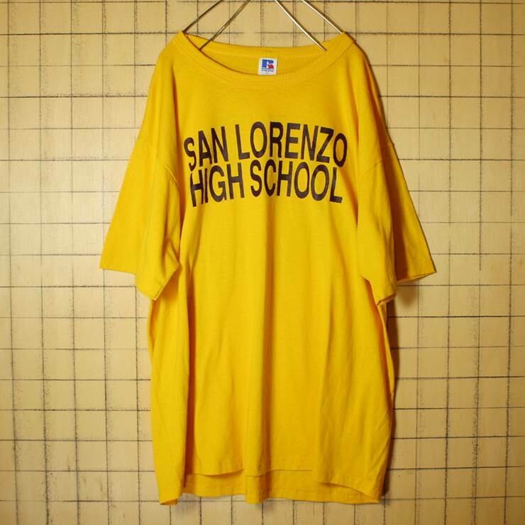 USA製 80s RUSSELL ATHLETIC 両面プリント 半袖 Tシャツ イエロー メンズXL 古着 042419ss52
